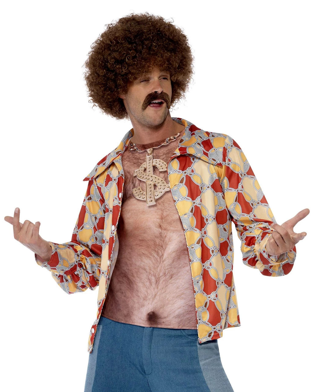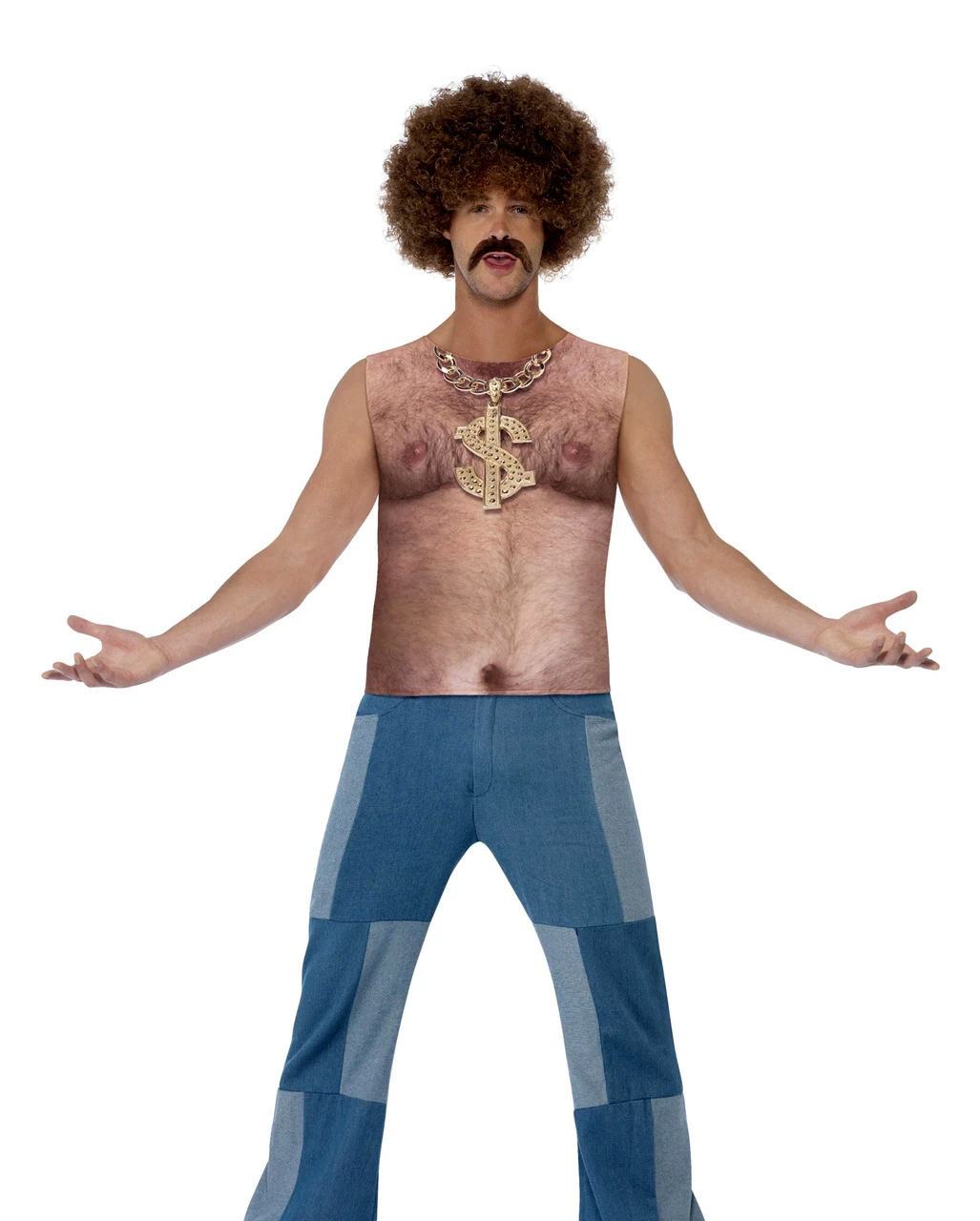 Das 70er haariger Oberkörper Achselshirt ist éin authentische Oberteil, um auf Faschingspartys für richtige Optik zu sorgen. Der Frontprint imitiert eine haarige Brust samt Goldkettchen im besten Stil der Seventies Du möchtest das Shirt clever erweitern? Dann ordere jetzt zusätzlich die Disco Afro Perücke Dunkelbraun und Polizei Spiegelbrille hier im Shop.