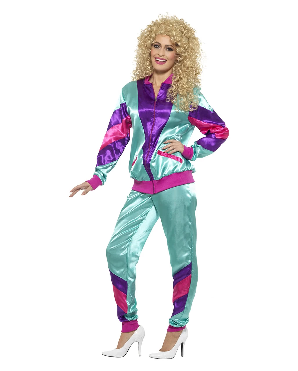 Unser 80er Jahre Trainingsanzug Kostüm für Frauen ist eine geniale Verkleidung für die „Back to the 80s“ Geburtstagsparty & Fasching. Kostümiere dich im 80s Style mit dem bequemen Jogging-Anzug und zeige, dass sich nicht nur Männer in dem Sportler Look zeigen können.