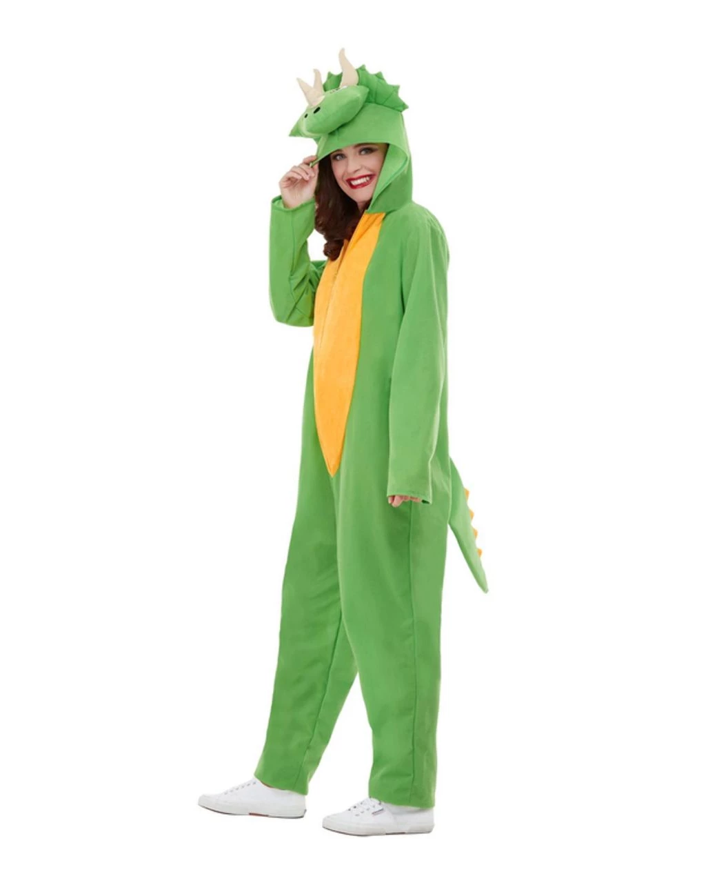 Mit dem Dino Onesie Kostüm für Erwachsene wirst du zum urzeitlichen Bewohner Pangaeas. Unser Triceratops Jumpsuit ist ein Dinosaurier Kostüm für Erwachsene, welches dich direkt in die Zeit der eindrucksvollen Riesen katapultiert. Für Karneval, Halloween & Mottofete eignet sich der Dinosaurier Kostüm-Overall ebenso gut wie für Aufführungen. Noch mehr Dino Verkleidungen für Erwachsene und Kinder findest du in unserem Onlineshop.