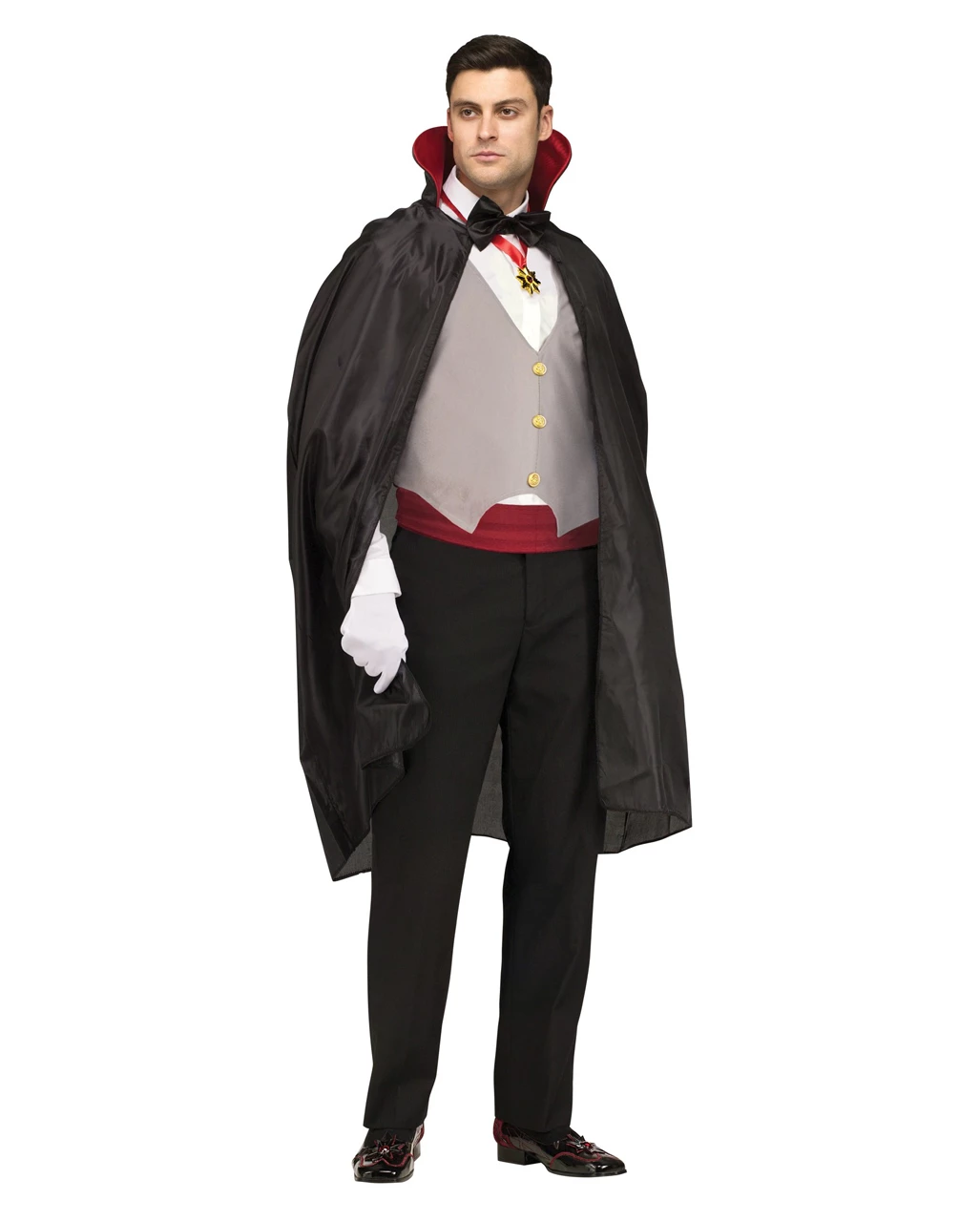 Klassische Vampir Kostüm mit Umhang, Weste und Kummerbund