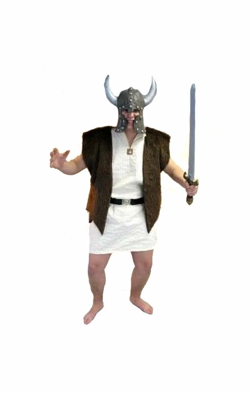 Das Germanen Kostüm verfügt über drei Kostümteile, ein weißes, ärmelloses Nesselhemd, eine braune Weste und einen Gürtel. Am Halsausschnitt ist das Wikinger Hemd mit goldenen Rändern und am Brustteil mit einem silbernen Knopf verziert. Die Weste des Germanen Kostüms aus flauschigem Plüschstoff endet im Zickzackmuster. Dein Germanen Outfit wird mit dem schwarzen Gürtel vervollständigt, der zusätzlich eine silberne Gürtelschnalle als Applikation hat. Wenn Du Dein Barbarischen Krieger Kostüm mit weiteren Karnevalskostüm Accessoires, wie mit dem Goldfarbener Wikinger Helm mit Pelzbesatz oder mit dem Dracula Schwert perfektionieren möchtest, dann kannst Du die besten Kostümzubehöre in Giga-Auswahl bei Karneval-Universe.de finden