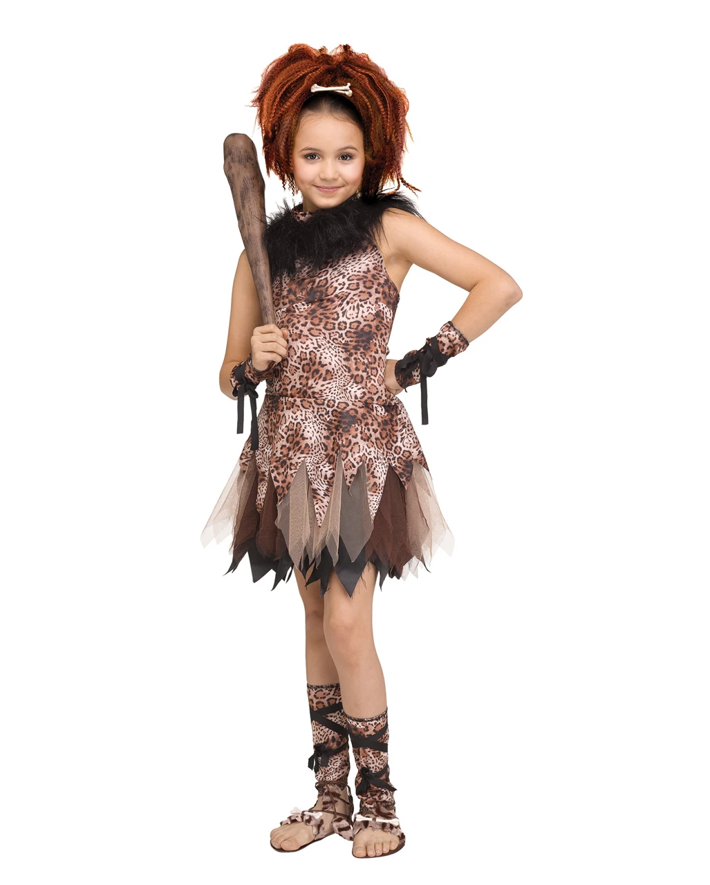 Lieferumfang: 1 x Höhlenmädchen Kinderkostüm