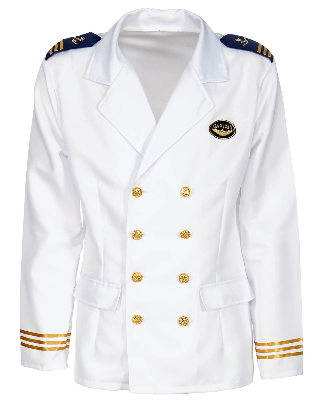 Das Kapitäns Jacket für Herren überzeugt mit elegantem Design und goldenen Zierborten, Goldknöpfen und edlen Schulterkappen. Diese edle Schifffahrer Jacke macht sich ideal zu weißen Kostümhosen und kann perfekt mit einer Kapitänsmütze kombiniert werden. Hierfür empfehlen wir dir die Kapitänsmütze Premium
