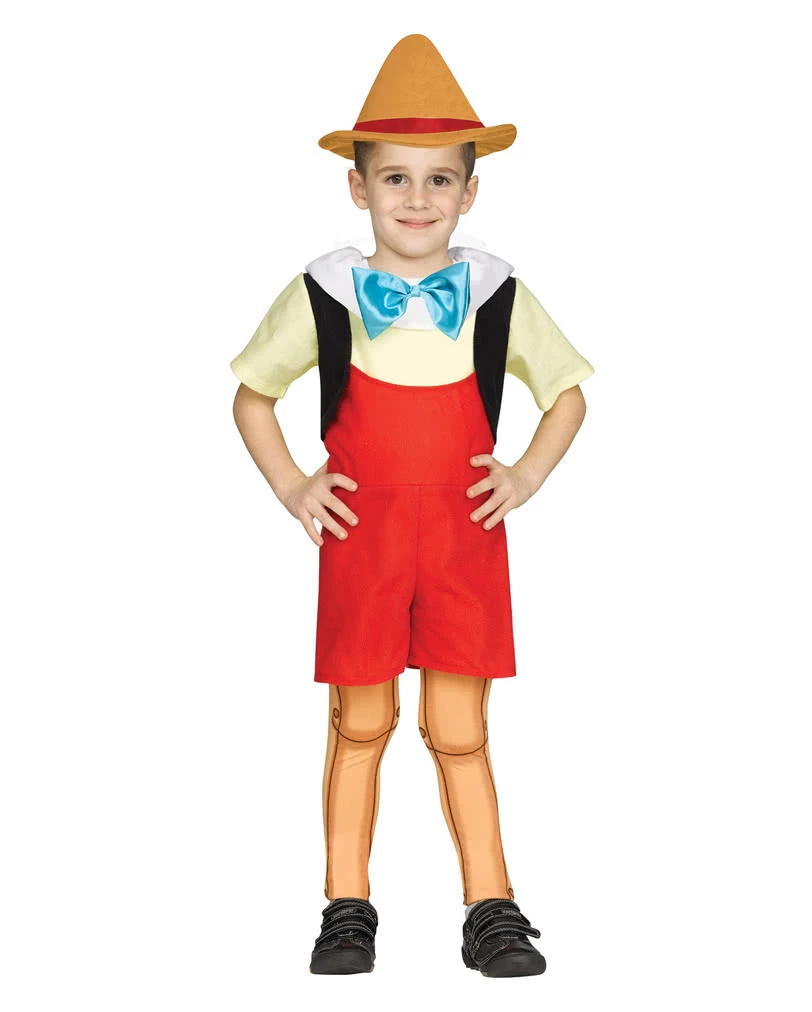 Das Kleinkinderkostüm Marionetten Junge besteht aus Jumpsuit, Leggings und Hut. Der Jumpsuit des Märchenkostüms zeigt eine kurze rote Latzhose mit gelbem Shirt und stilisierten Hosenträgern, samt metallic-blauer Fliege und weißem Kragen. Die Spielzeugpuppenverkleidung wirkt dadurch einfach schick. Der Hut der Holzjungenverkleidung weist zur Zierde ein rotes Hutband auf und fühlt sich sehr weich an. Die Aufdrucke der Leggings des Faschingskostüms lassen die Beine deines Kindes so aussehen, als wären sie aus Holz. Weitere märchenhafte Verkleidungen für Kleinkinder wie das Plüsch Zwerg Kleinkinderkostüm und das Kleinkinder Wolf Kostüm haben wir ebenfalls auf Karneval-Universe.de!