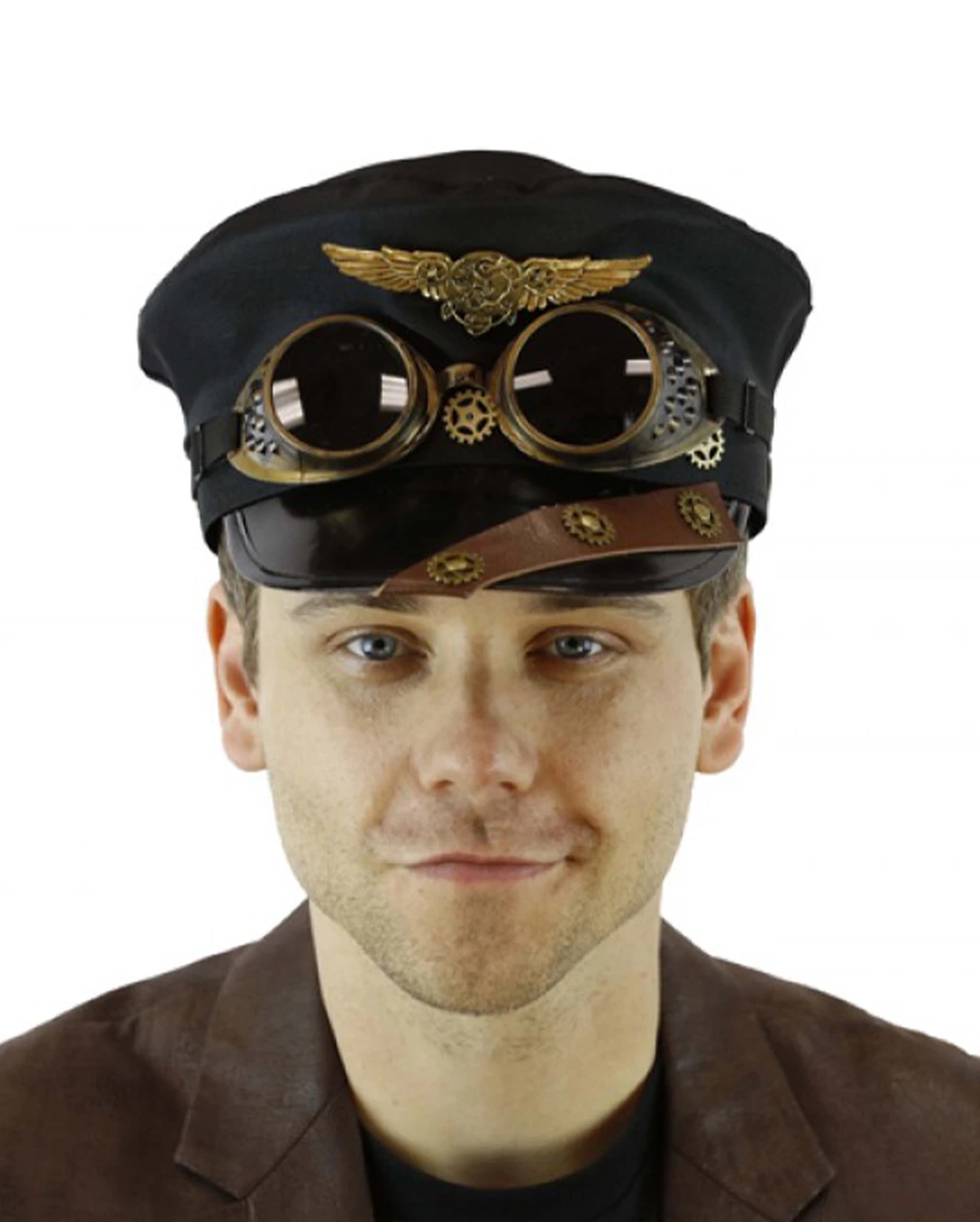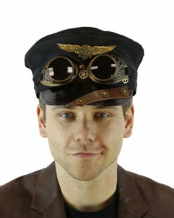 Pilotenhut mit goldenen Applikationen als Steampunk Kostüm Accessoire