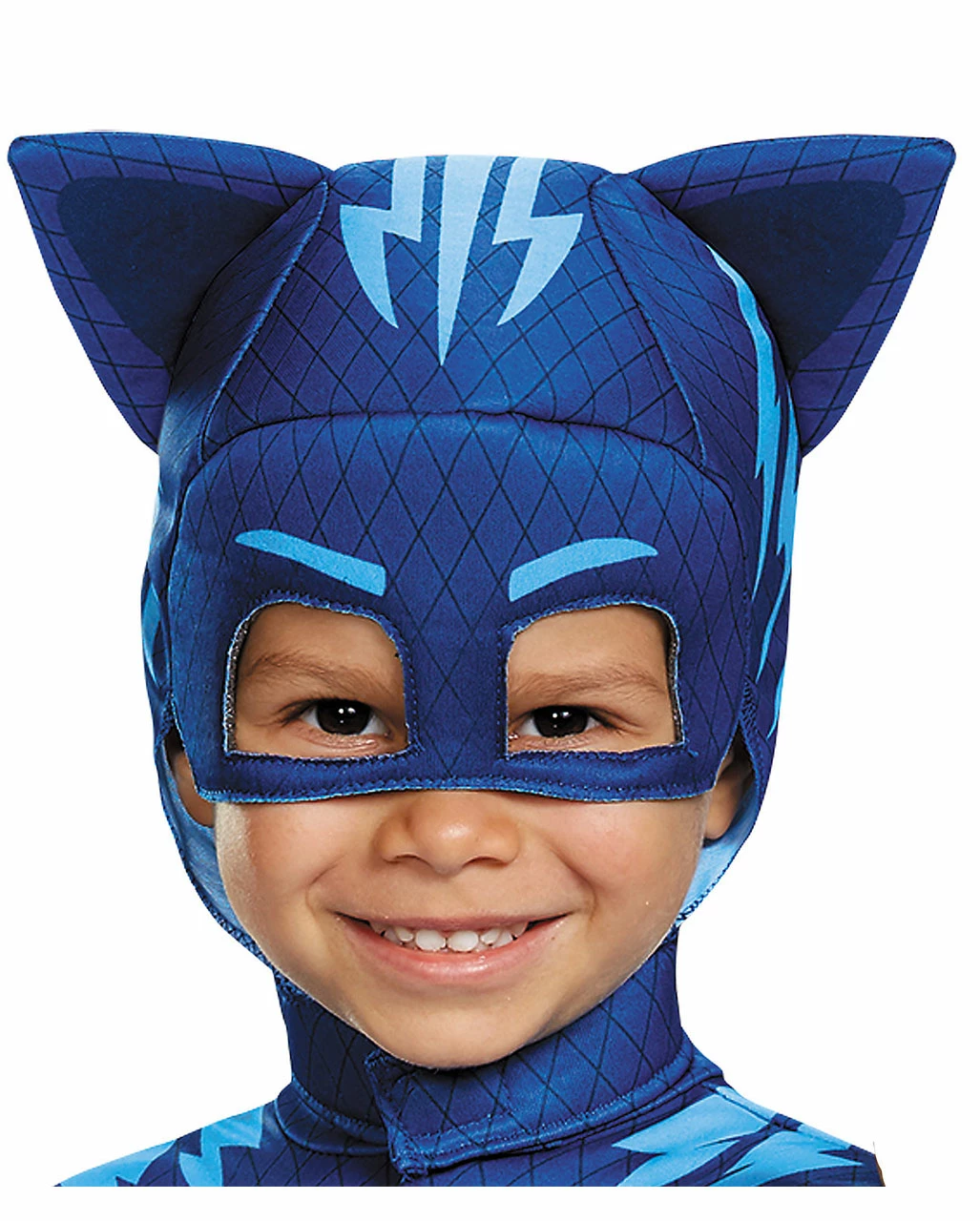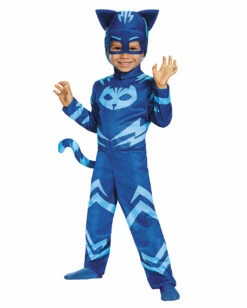 Greg, Amaya und Connor sind am Tag Freunde, doch bei Nacht verwandeln sie sich in Helden in Pyjamas! Connor wird zu Catboy und hat alle Fähigkeiten einer Katze. Er kann jedes kleinste Geräusch hören, super-schnell laufen und über fast jedes Hindernis springen. Gemeinsam mit seinen Freunden, den PJ Masks, muss Catboy seine Gegner Romeo, Lunagirl und den Nachtninja in Schach halten. Kein Wunder, dass die drei Pyjamahelden immer wieder über sich selbst hinauswachsen. Lass dein Kind zum nächsten Karneval als mutiger Katzen-Junge die Straßen unsicher machen. Im PJ Masks Catboy Classic Kinderkostüm hat dein Sohn eine coole Action-Verkleidung gefunden, die ihn zum Helden macht!