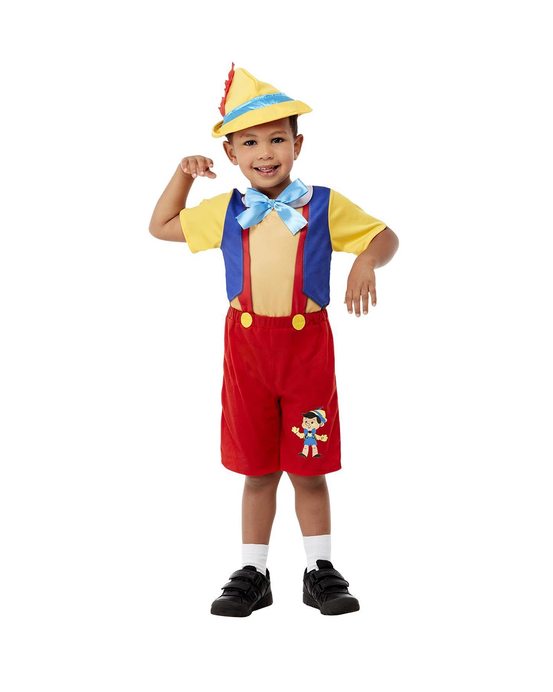 Das Puppen Jungen Kostüm für Kinder ist das ideale Kleinkinder Halloween Kostüm. Es ist farbenfroh und originell. Der Jumpsuit des Marionetten Outfits für Halloween zeigt eine rote Hose mit roten Hosenträgern und gelben Knöpfen daran. Auf dem linken Hosenbein ist eine Puppenfigur abgebildet, die an den legendären Pinocchio erinnert. Das angedeutete Hemd ist gelb, genau wie der süße Kostümhut. Den Kragen ziert zudem noch eine süße blaue Schleife. Weitere geniale Karnevalskostüme für Kinder findet ihr hier im Shop.