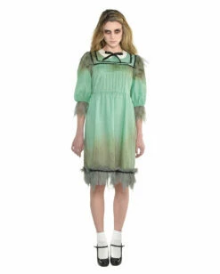 Das Schreckliche Zwillingsschwester Kostüm zeigt dich als untotes Zwillingsmädchen mit bitterbösen Absichten. Das türkisfarbene Kleid ist etwas schmutzig am Rüschen-Saum. Trotzdem seht ihr mit dem adretten Claudine-Kragen und der schwarzen Schleife noch recht schick aus. Die leicht gepufften Ärmel begeistern mit einer Lage Tüll am Saum, der in Zacken geschnitten ist. Als hätte Mutti euch hübsch anziehen wollen. Natürlich war das auch das Letzte, was Mutti tat. Danach habt ihr euer teuflisches Werk vollbracht. Und wer genügend Horrorfilme gesehen hat, weiß, was das heißt. Das Kleid sorgt damit für einen richtig gruseligen Hingucker auf der Halloween Party..