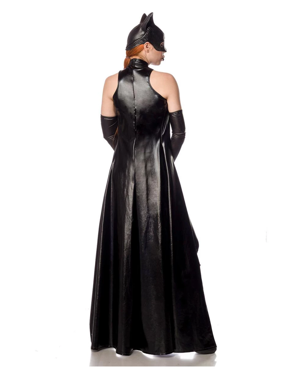 Das sexy Fledermaus Girl Damenkostüm besteht aus einer Corsage und Leggings in Lederoptik, langen Handschuhen und einem Umhang im glänzender Wetlook Optik. Die im Lieferumfang enthaltene Fledermaus Kopfbedeckung ist aus Latex und vervollständigt das extravagante Fledermaus-Damenkostüm.