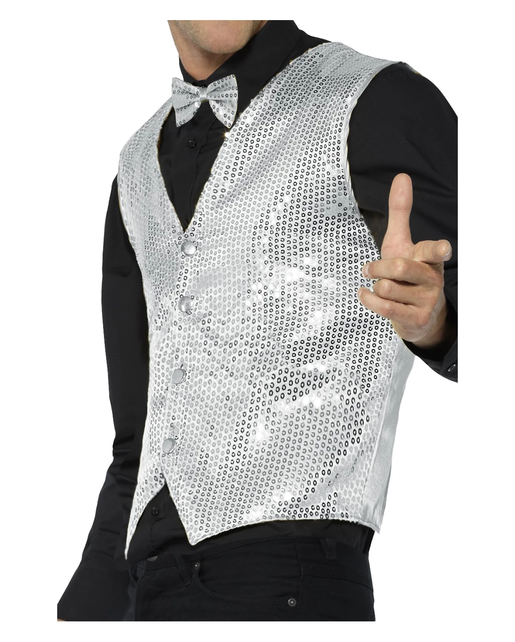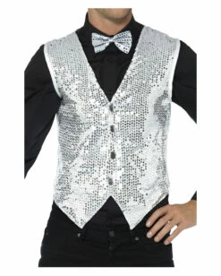 Lieferumfang: 1x Silberne Männer Pailletten-Weste