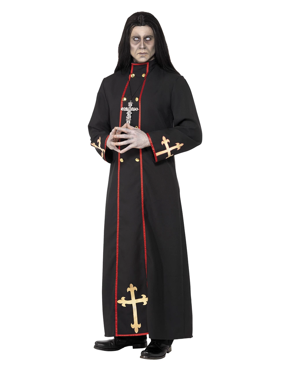 Die Kirche hat sich seit ihre Entstehung nicht nur mit Ruhm bekleckert – angefangen von der spätmittelalterlichen Heiligen Inquisition bis hin zur gegenwärtigen Verlogenheit bezüglich sexueller Fragen liefert die mächtige Institution so einiges an Angriffsflächen. Mit der Toter Pfarrer Verkleidung kannst auch du in die Rolle eines unbarmherzigen Geistlichen schlüpfen.