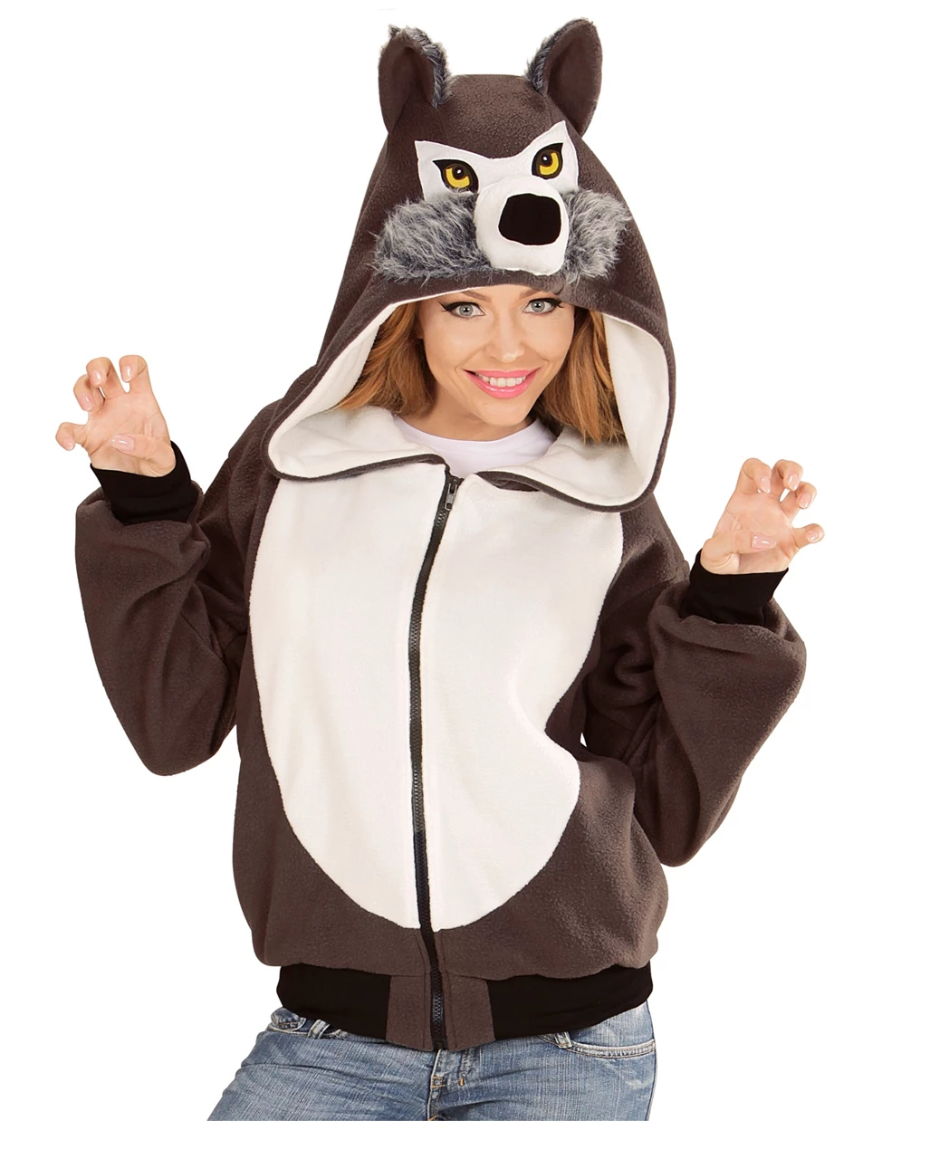 Werde zum Party Animal, und verkleide dich mit der frechen Wolf Jacke als Kostüm! Gerade an kalten Tagen ist die kuschelige Wolf Jacke super wärmend und ein echter Hingucker für Fasching oder Halloween. Es handelt sich um eine Unisex Kostüm Jacke, die mit einem Wolfsgesicht designt ist. Für Après-Ski & Mottopartys wirst du in dieser Kostümjacke alle Blicke auf dich ziehen. Ein aufwendiges Make-up ist gar nicht nötig, da du blitzschnell verkleidet bist und dich unters Party-Volk mischen kannst.